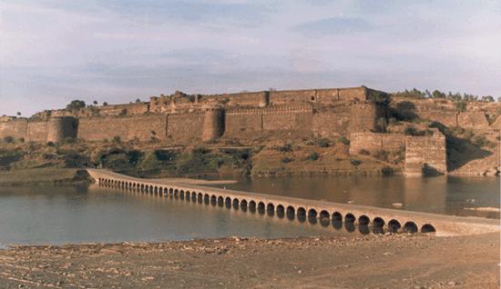 The foundation of this magnificient fort was laid in the 7th century and this was completed in the 14th century. Outside the fort is the dargah of sufi saintMittershah and a fair is held every year during moharram here. Monastery of Saint Pipaji is nearby, a contemporary of Saint Kabir.\r\nGagron Fort is perched on the low ridge of the confluence of rivers Ahu and Kali Sind, whose water surrounds it from three sides. On the fourth side was amoat, thus completing its defences. Gagron fort is one of those rare forts with Vana and Jala; i.e. both forest and water protected. The Mukundarrah range of hills jare behind this fort.