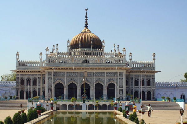 The Hussainabad or Chota Imambara is an exquisite building built by Nawab Muhammad Ali Shah in 1839 as a burial place for himself. On the two sides of the Imambara are two small structures replicas of the Taj Mahal. One as the burial place of his daughter and other of her Husband. The water reflection of the structure in the tank in front of the Imambara is a beautiful sight on a sunny day. \r\nThe walls of the Imambara are embellished with beautiful calligraphic verses in Arabic and the interiors of the Imambara have on display some exotic objects ranging from elaborate chandeliers and gilded mirrors to tazias made of sandalwood, wax, and paper. A small bazaar inside the entrance of the Imambara is the home of chikan and bidri workers and of those who make the small clay figures typical to Lucknow. Opposite the entrance is a similar structure, the Naubat Khana, where seven musicians play three times a day in honour of the dead. During Muharram the Imambara is ablaze with illumination.