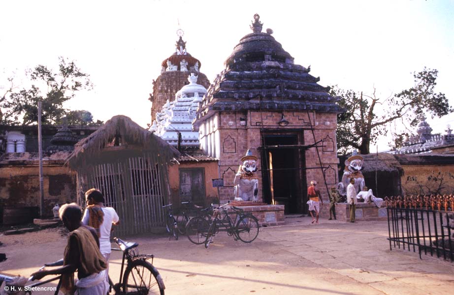 One of the four sacred places for the Hindus, the Puri temple is dedicated to lord Jagannath. Jagannath literally means the Lord of the Universe. This 65meter tall temple can be seen long before entering the town of Puri. The tallest and the most magnificent temples of Orissa, the idols are the most unique as they are made of wood and have a change over after every stipulated time. The idols comprise of Balabhadra, Subhadra, and Lord Jagannath. \r\nThe Jagannath temple was built by the Kalinga King Chodganga in the beginning of the12th century. The Deities of Lord Jagannath, Balabhadra, Subhadra and Chakra Sudarshan are made of Margosa wood. Lord Balabhadra is the elder brother, Lord Jagannath is Younger brother and Devi Subhadra is youngest sister. According to the legends the Lord Jagannath earlier was worshipped alone as Neelmadhab, in dense forests by a tribal king Vishwavasu. The king Indradyumna heard about it and wanted to worship the Lord. So he sent one of his spies, but the spy too could not find the exact place so eventually married Vishwavasu's daughter. At the pretext of being the son- in - law, he requested the tribal chief to take him to the deity, Vishwavasu took him blind folded. But the person outsmarted him by throwing mustard seeds all the way, which grew within few days and called King Indradyumna. But the king was disappointed when he could not find the deity there. But a divine sound assured him that he would be able to worship the Lord. \r\nThe present temple was begun by King Chodganga Dev and finished by his descendant, Anangabhima Dev, in the 12th century. The main temple structure gives an imposing impression because of its height of 65m on an elevated platform. The temple has the largest kitchen in the world and feeds thousands of devotees every day. A meal for more than 100,000 people is cooked on a festive day and other days minimum of 25000 devotees are fed. \r\nThe main temple has the blue wheel called as the Neel Chakra made of alloy of eight different metals. This 11 feet 8 inches high with a circumference of about 36 feet, is perched on the top of the temple and a flag is tied every day. On every 11th day of the lunar circle a lamp is lit on top of the temple near the wheel. The temple can be entered through four gates which have their own significance. The Eastern Gate is the Singhadwara or the Lion Gate, the Southern Ashwadwara means the Horse Gate, and the Western Gate is the Vyaghradwara or the Tiger Gate, and the Northern Hastidwara which means the Elephant Gate. The animals are neatly carved on the gate, but the most commonly used is the Lion gate which falls on the main road. In front of the gate is the Aruna Stambha or the pillar of Aruna which once was situated at the Sun temple of Konark. It has the figure of the charioteer of the Sun God. \r\nThe navakalebar or the new body ceremony of the deities takes place whenever there is an extra leap month in the year. During this time various artisans are employed who have been doing this sacred duty for generations. It is not one man who makes the idol but it is made in parts by various artisans. During this time the small township takes the shape of a huge fair. \r\nThe Puri temple has always attracted invaders for its riches over the centuries but it has withstood all the attacks and the problems, as the devotees say, by the grace of Lord Jagannath. Unfortunately, non - Hindu are not allowed inside the temple, but as the legend says, just viewing the Neel Chakra on the top can give one the same emancipation as that of seeing the Lord in the temple. \r\nThe Lord and his siblings are taken out in a huge procession every year in June - July and are shifted to a summer temple for a week. This procession is known as the Rath Yatra and the annual religious affair attracts tourists and devotees from all over the world.