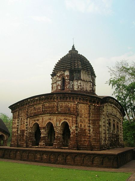Bishnupur was the seat of the Malla dynasty who ruled more than half the Bengal for 1000 years till the Muslim and the British invasion came along. The ruins of the reign are still found in Bishnupur. This peaceful small town is abundant with natural beauty and the most famous terracotta temples. The Legend goes that Beer Hambeer king of the Malla dynasty once asked to loot the priceless jewels that were to pass his town. But instead of jewels it had priceless Vaishnav texts. After reading them the king decided to devote himself to Lord Vishnu and became a Vaishnavite. The name of the town has its origin in the devotion of lord Vishnu. The history of this town dates back to 694 A.D. when the Malla dynasty was established, but the temples, nearly thirty of them were built in the 17th to 18th centuries only mostly by Beer Hambeer.<br />The temples are dedicated to Radha and Krishna and since stone wasn't easily available, royal architects and craftsmen had to get very inventive with the red laterite soil found here to please their kings. The result was one of the most beautiful cities in the world of its time. Along with the temples, nearly 30 of them, there are water tanks called Bunds and also a beautiful Ras Mancha built by King Hambeer which stands out from the rest for the structures. In fact, it's the only temple of its kind in India with only one chamber and the rest is just three arched galleries that run around the deity's room. <br />The architecture of this place is very peculiar and the most popular is the Jor Bangla or the joint bungalow. It is best described as Siamese huts stuck together at the centre and topped by a common head. A single spire rises from the middle of the sloping brick roofs that are shaped exactly like the thatched top of a humble domestic hut. Jor-Bangla's walls are exquisitely decorated with terracotta pannels that depict scenes from Mahabharata, Ramayana and Krishna Leela. All the other temples are also ornamented with various mythological scenes from the life of Vishnu and his incarnations. <br />Apart from the temples Bishnupur has given birth to the Bishnupur Gharana in Hindustani classical music. It is a distinctive style of music which is still followed and learned. Shopping for souvenirs in this quaint little town is but essential. Various articles made of terracotta including jewellery are exquisite. One of the most beautiful sarees of India are woven here the Baluchari which have mythological scenes from Ramayana and the Mahabharata embroidered on it. Last but not the least Bishnupur's sweets are very famous and tasty and one should leave the ancient town without them.