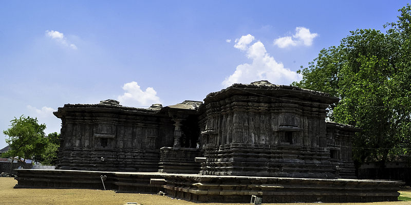4-km from Hanumakonda crossroad in Warangal district is the Thousand Pillar Temple, a fine specimen of 'Kakatiya' architecture and sculpture. It is the main attraction of Hanamkonda. 'Rudra Devi' built the temple in 1163 AD.\r\nThe temple is in shape of a star and has three shrines dedicated to Lord Shiva, Vishnu and Surya. The temple is built on a 1m high platform on the slopes of the Hanumakonda hill, and has a majestic monolithic Nandi. The black basalt Nandi, a monolith, has a lovely polished finish.\r\nThere are many small lingam shrines surrounding the gardens. The temple is famous for its richly carved pillars, screens and detailed sculpture. The atmosphere is calm and serene with the sonorous ringing of the pooja bells; gentle chirping of the birds and the soothing cool breeze.\r\n