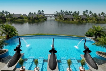 Description: The Hotel Built on 18 acres, this five-star deluxe resort with one of the finest spas in the country is located in 'Kumarakom', right on the shore of the 205 square kilometer Vembanad Lake. This area in Kerala the most southern state of India is respectfully referred to as "Gods own Country". Elegant accommodation including plush villas with private pool, cottages and deluxe rooms in tranquil, serene landscaped setting to guarantee rejuvenation.