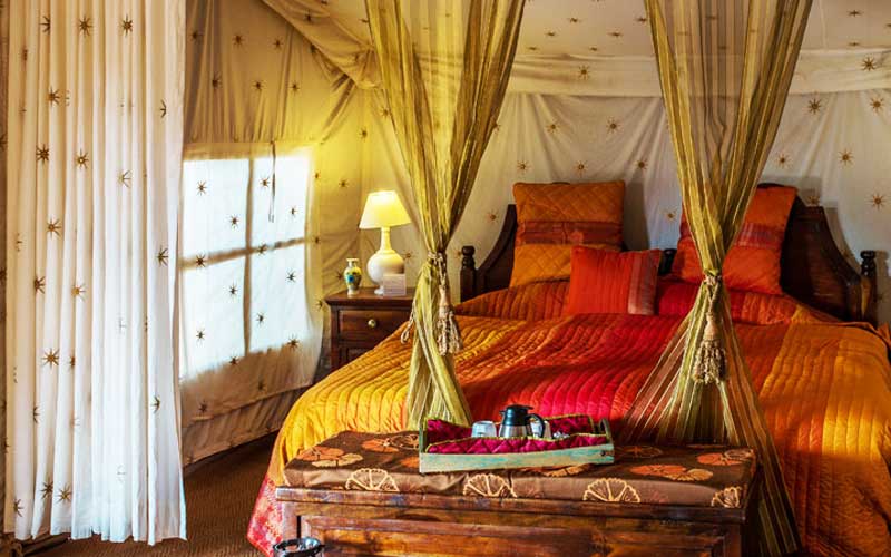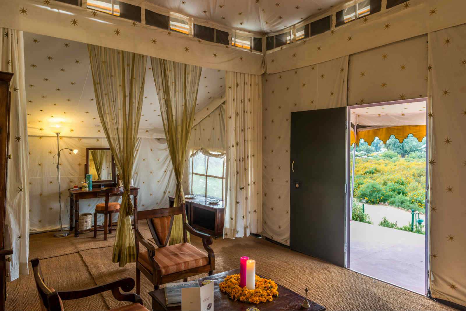 Description: “This wonderfully evocative land with its timeless scope encompasses and enthralls…beautifully blending the transient with the sublime; and creating individual memories that linger long after the eddying swirl of desert dust is but a speck in the rearview of our thoughts. Departures presage arrivals but it is our focus to make the in-between matter. As transitory visitors in this hospitable land we must leave but barely a ripple even as we delve deep and soak in the richness that creates the perfect counterpoise to the sparse context.” Orchard Hospitality Private Limited offers its guests a level of services that sets the bar high in terms of soothing accommodation, fabulous dining, entertainment and of course the overall experience! Set in a peaceful rural locale of Ganahera, amidst orchards of an indigenous Indian fruit called Amla (Emblica officinalis) and fields of roses, is this exclusive eco camp aptly named 'Orchard'. Ganahera is located close to the large open grounds of Pushkar, where Asia's largest camel fair is held annually. Orchard operates from September to March every year. The Resort is surrounded by flowers, home grown vegetables, gardens and multitudes of trees among which hang hammocks on which guests can laze in a relaxing environment! The grounds of the property are maintained by the local villagers who continue to use only organic methods of farming and harvesting practices that nurture the environment. The resort is consciously planned to be amidst farm lands where the locals continue cultivate their land and enjoy its benefits.